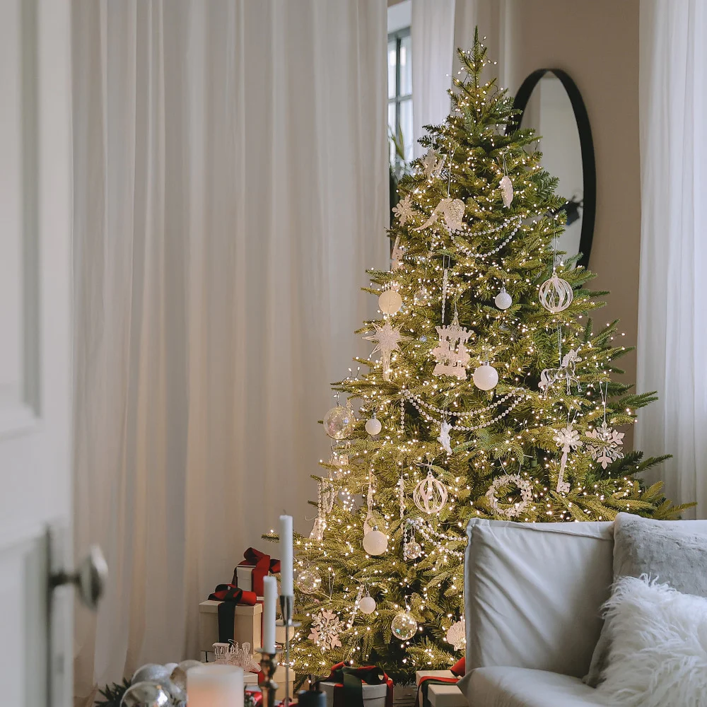 오너먼트는 대칭과 균형을 고려해 고르게 분산시켜야 해요. 큰 오너먼트는 트리 안쪽 깊숙이 배치하고, 작은 오너먼트는 가지 끝에 달아 입체감을 만드세요. 다양한 크기, 모양, 텍스처를 섞으면 트리가 더욱 풍성해 보여요.