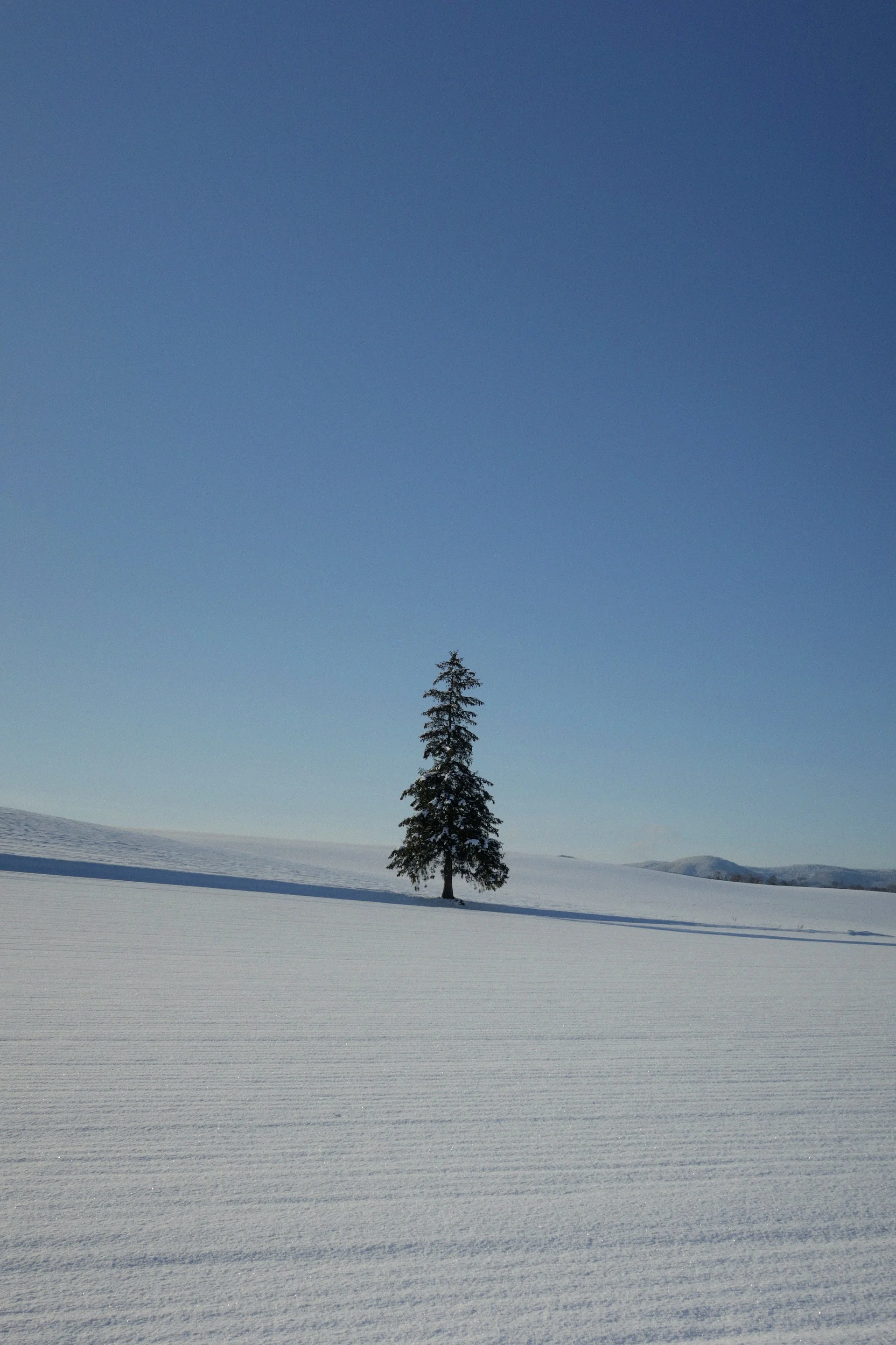끝없이 펼쳐진 순백의 언덕 위에 홀로 서 있는 이 트리는 홋카이도 겨울을 상징하는 대표 명소예요.