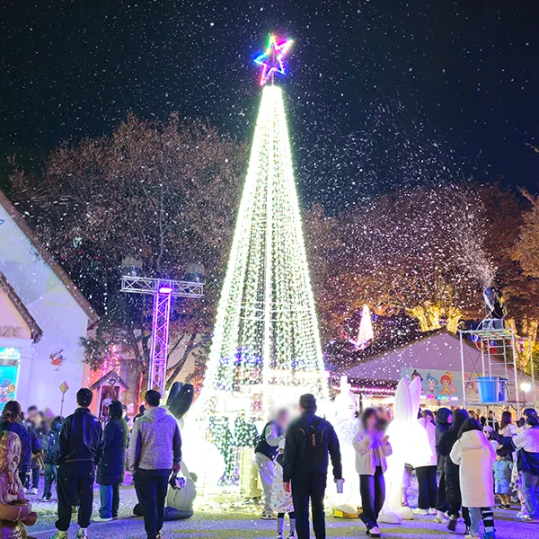 평일에는 저녁 7시, 8시, 주말에는 저녁 6시, 7시, 8시에 인공 눈이 내려 화려한 빛 축제와 어우러진 꿈같은 풍경을 만들어낸답니다. 눈 내리는 시간은 변동될 수 있으니 공식 홈페이지를 참고해주세요.